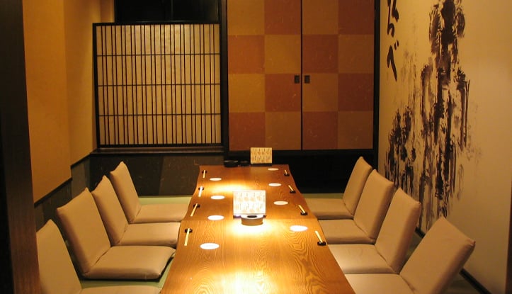 店内の座席は全て掘りごたつ式でゆったりおくつろぎ頂けます。 4名様から最大34名様までご利用頂ける大小6つの個室もご用意。